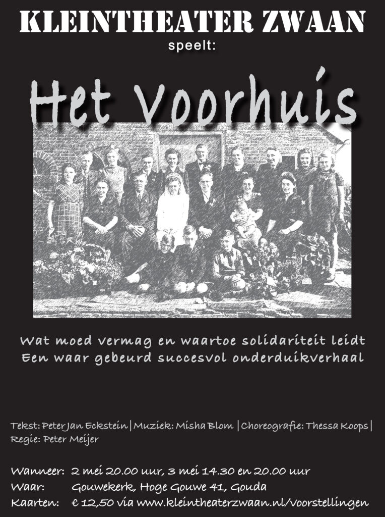 Iedereen kent het verhaal van Het Achterhuis, maar bijna niemand weet wat er met het Voorhuis aan de hand was. Beide verhalen gaan over meerdere gezinnen Joodse onderduikers. In Het Achterhuis van Amsterdam liep het dramatisch slecht af. In het Voorhuis van Stadskanaal overleefden 13 Joodse onderduikers, 2 duikers voor de arbeitseinsatz en 1 gedeserteerde Duitse soldaat de oorlog.